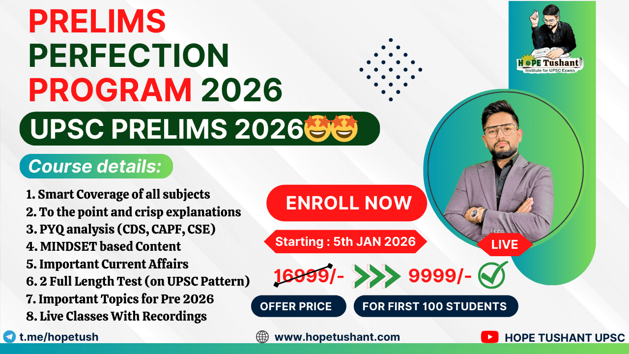 Welcome to HOPE Tushant, your one stop solution for UPSC -CSE . Here you will develop an overall understanding of topics as well as subjects. Interconnection and correlation will be the main objective so that you can study in an investigative mode.